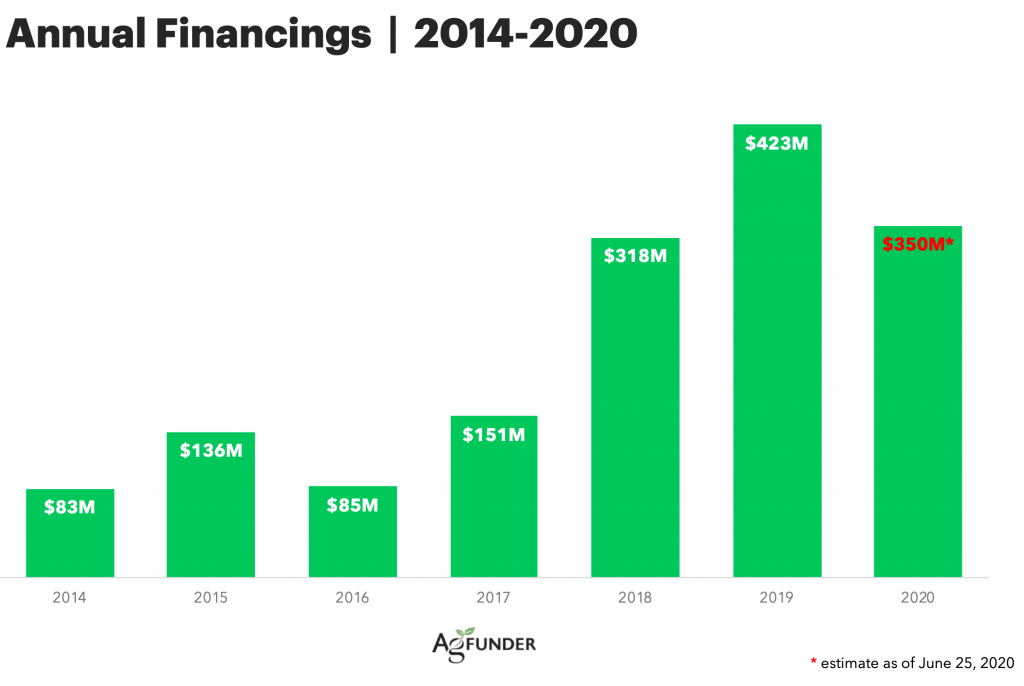 2019年开端,食物、农业科技和零售草创公司开端大批量呈现,这提现在2019年相关职业融资的类型里:99笔出资里有63笔是种子轮出资,A轮则占了20笔。本年的大盛行很可能让这个职业愈加昌盛。